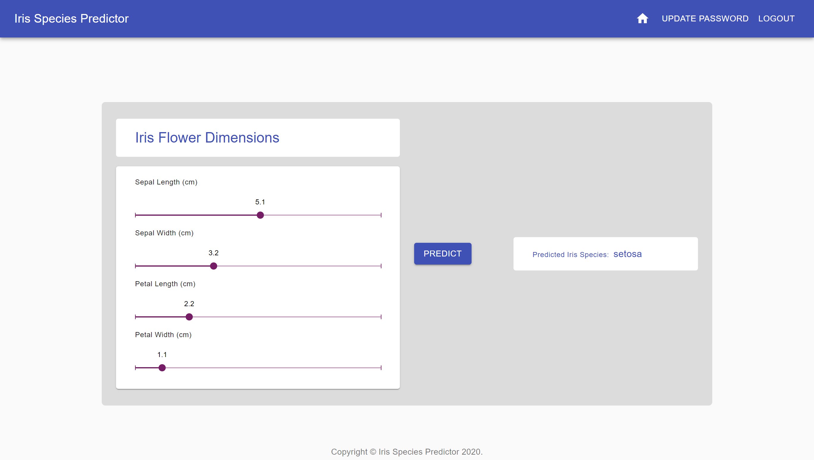 - The user would be able to provide sample iris flower data, and then press a button to make predictions. Once the user hits enter on the button, the user-defined iris data would be sent to the backend through a POST API request. The backend would process this data and make predictions based on the trained machine learning model integrated into the backend. The predicted iris flower species would be then instantly sent back to the user on the frontend.