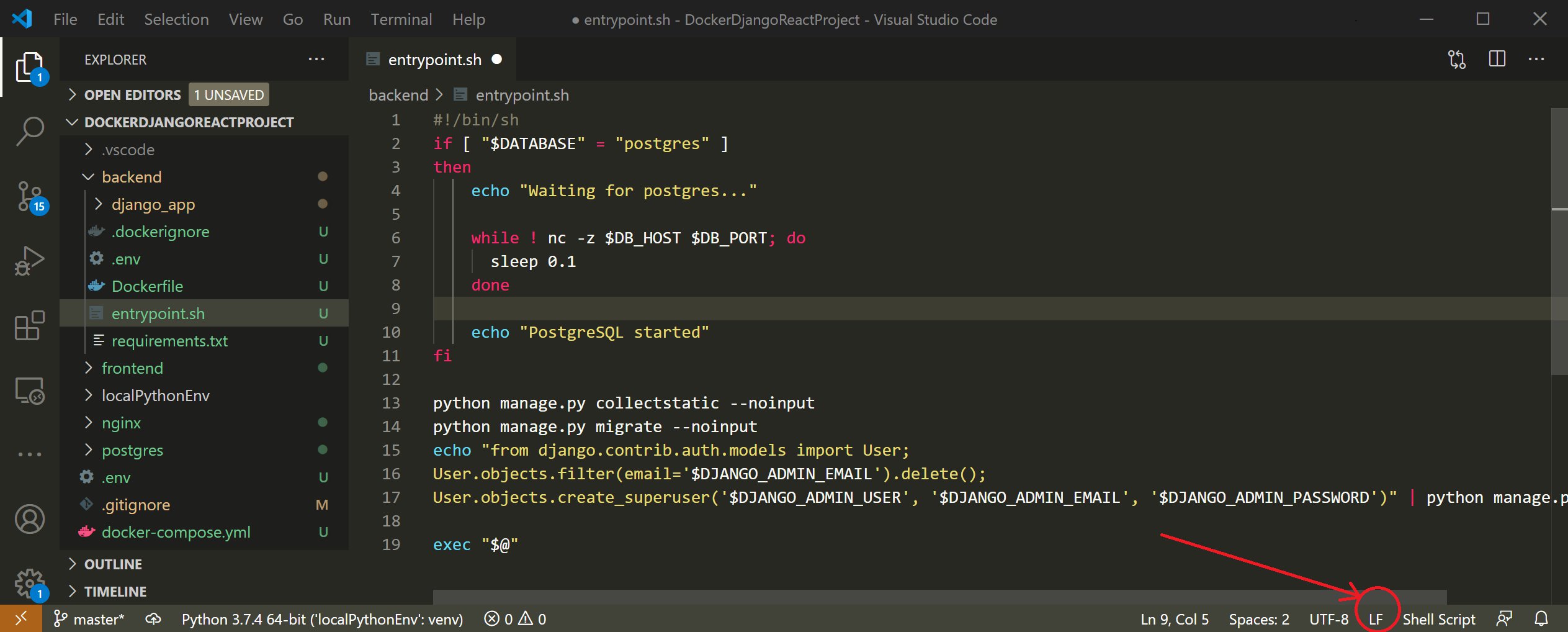 The git repository for this project is located here. You may simply clone the project, and run 'docker-compose up' in your terminal from the project folder to see the application in action. You just need a single command in your terminal – docker-compose up – that's it! How cool is that!😎 (PS: If you are on windows, be sure to change the end-of-line (EOL) format of the 'entrypoint.sh' file from CRLF to LF after cloning the project.)