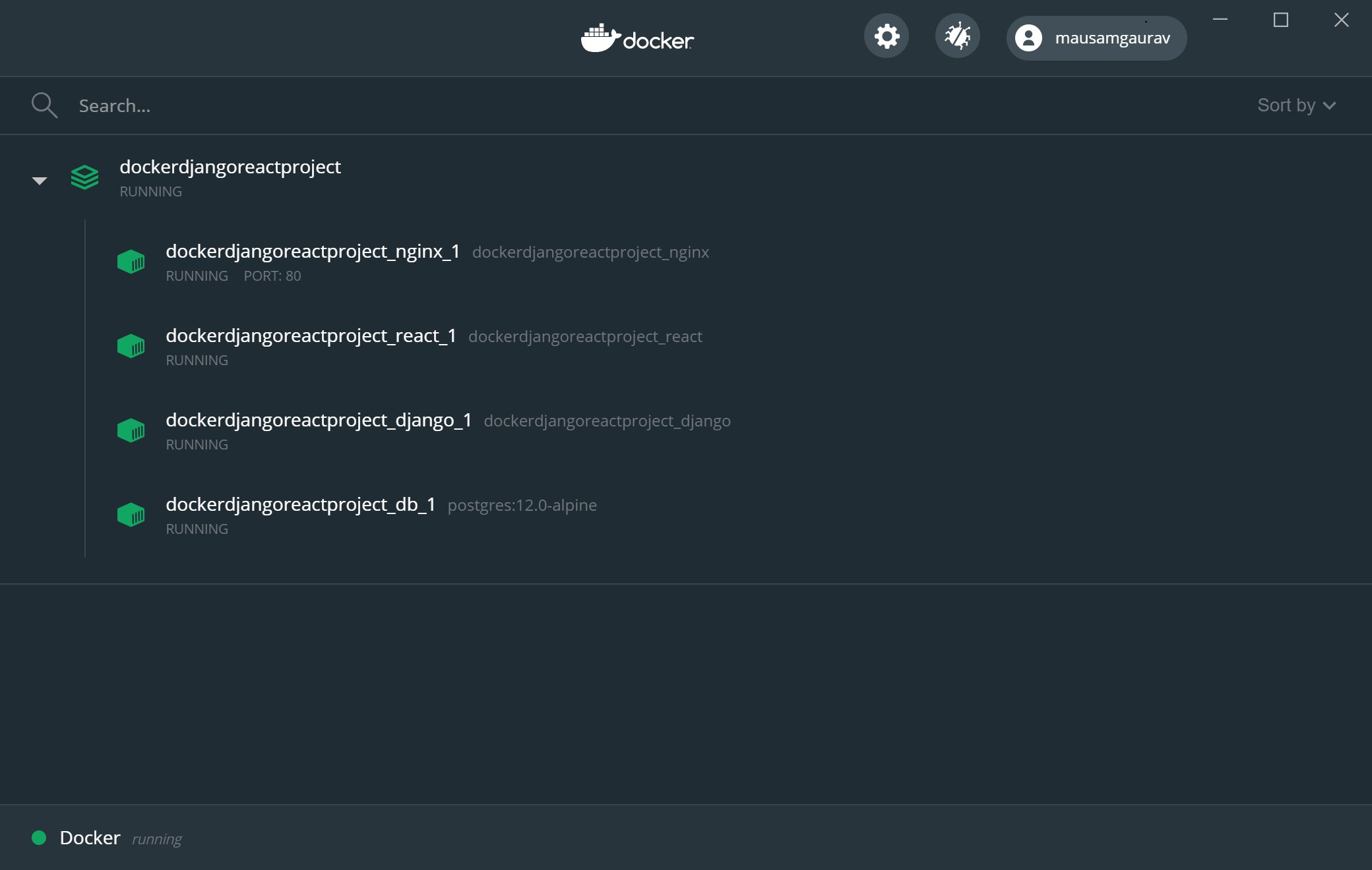 The reason we would use docker is not only because this is pretty much the standard for productionising applications, but also, as you would see, that it allows to seamlessly integrate all our developed work in a single docker workflow which is platform-independent and allows making deployments much easier with simple docker commands, in contrast to running individual applications with multiple commands. We would also add Nginx to our docker workflow which would allow us to serve both our Django and React applications running within Docker containers.