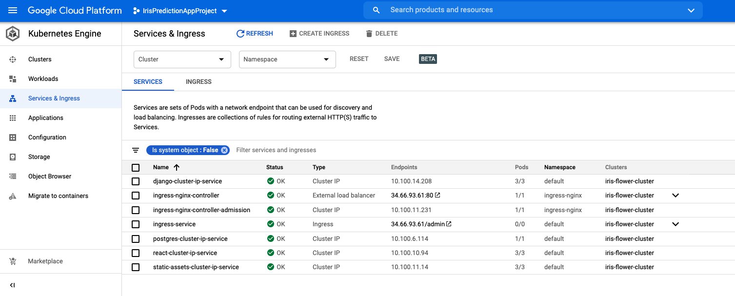 If you go to the Google Cloud Kubernetes dashboard, you would see that an object called 'ingress-nginx-controller' has been created with a status 'OK'.