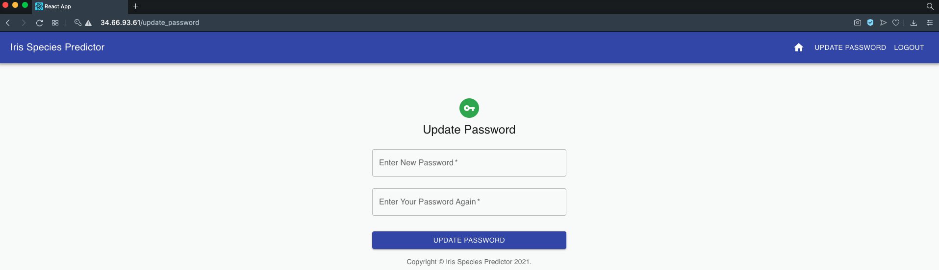 The way this architecture would work is that while making predictions the frontend React app would be loaded into the browser. When the user tries to log in, a request would be sent to the Django app running within our Kubernetes cluster. The Django app would connect to the PostgreSQL engine to verify if the user is registered and if the user credentials match with the username and encrypted password stored in the PostgreSQL database, Django would authenticate the user and send an authentication token back to the browser. This token would remain active for a certain time (default was 5 hours) or until the user logs out. When the use hits predict from the prediction page, a request would be sent to the Django app again. The Django app would then process the incoming data to make a prediction and send it to the browser. Note that, because of this approach, the frontend app would not interact directly with the backend Django pods, but rather this interaction would be intermediated by the browser.